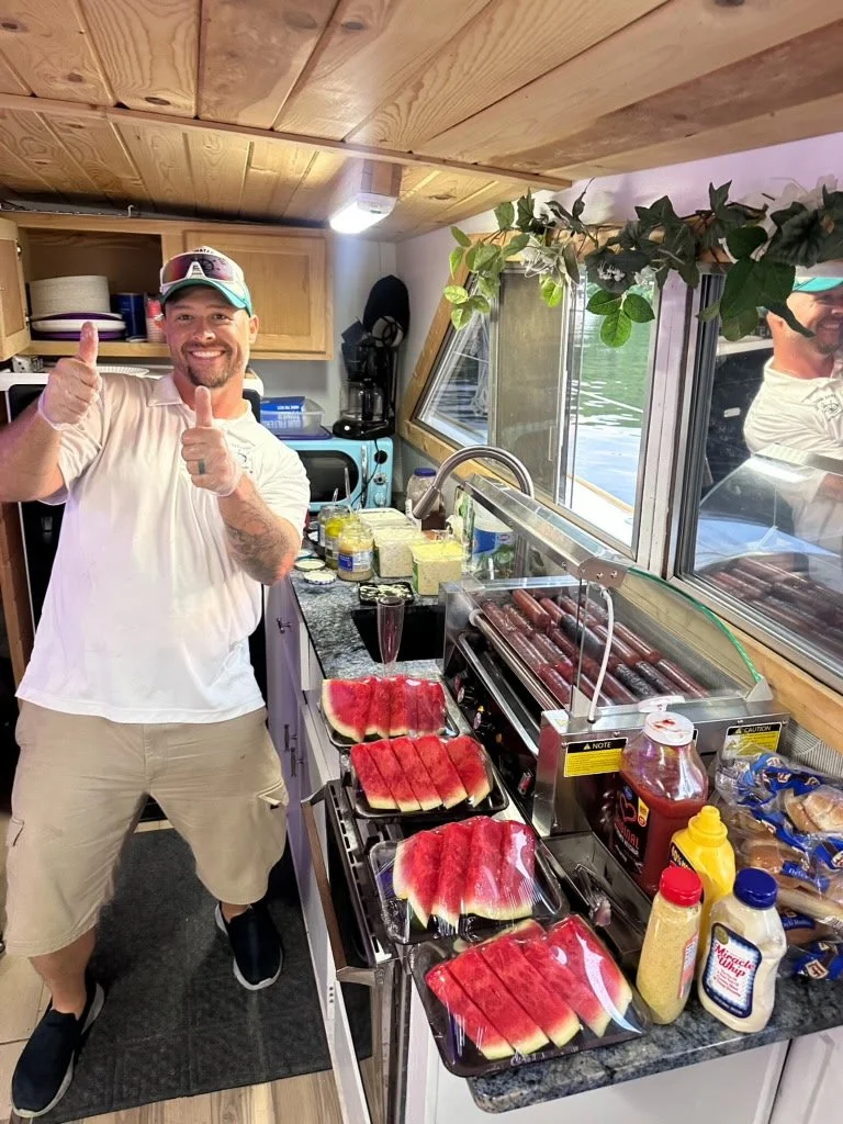 “Mystery Machine”: Is the big boy! Great for large parties, usually guests reserve for bachelorette, bachelor, reunions, or birthday parties! Amazing status entrance for guests disembarking on popular swim up bars. Anhoring out is most requested, life vests and water toys included! (No last minute bookings, reservations only).